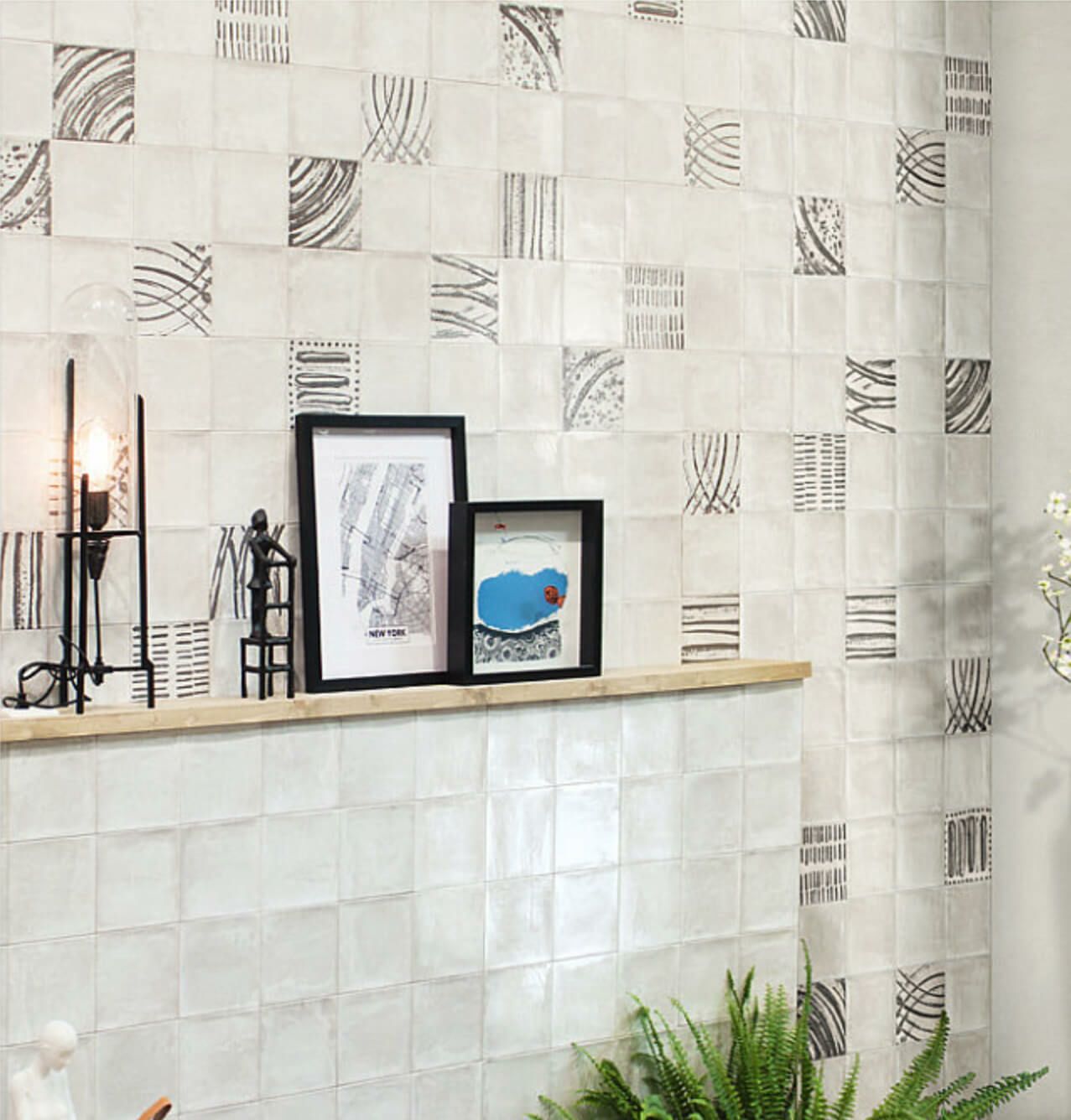 ● 5mm程度の目地幅で施工してください。 ● 役物は用意されていません。出隅には45°カット加工またはコーナービットをご用命ください。