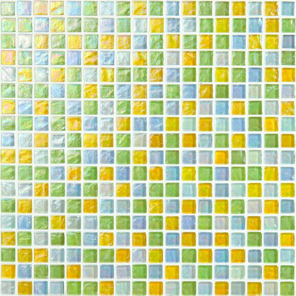 「シュガー」の名の通り、スウィートな砂糖菓子をイメージさせる愛らしい色合いと大きさのガラスモザイクです。カラフルで小さなモザイクピースが集まって一面を彩る様子は微笑ましく、気分を明るくしてくれます。表面の微妙な凹凸とラスター釉が、ガラスの中に作り出す波紋のような光のキラキラが素敵です。