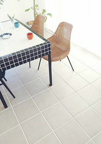 明るい色で室内を広く見せる演出ができ、さらに空間全体も明るくしてくれるベーシックな床タイル。超汚れ防止機能により、清潔感を保つことができます。