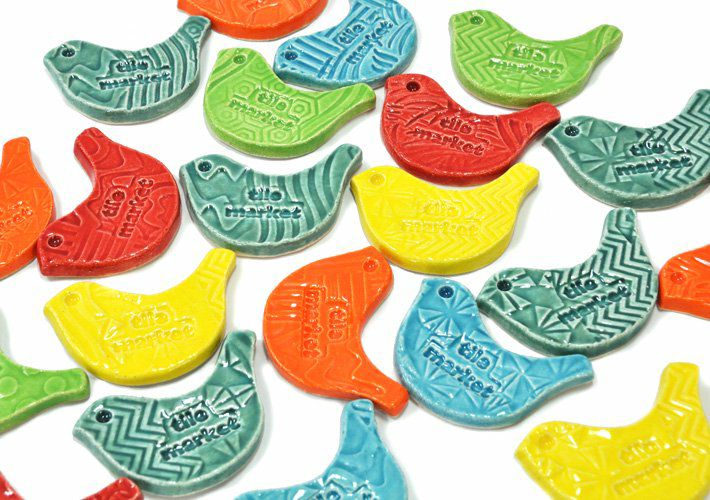 ひとつひとつ手作業でエンボス加工と彩色を施した、鳥の形をしたカラフルなモザイクタイルです。