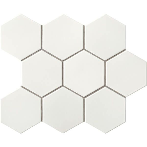 グレイッシュカラーのデザイン素材。釉薬のむら感が六角の形状に馴染んで、上品な雰囲気を演出します。