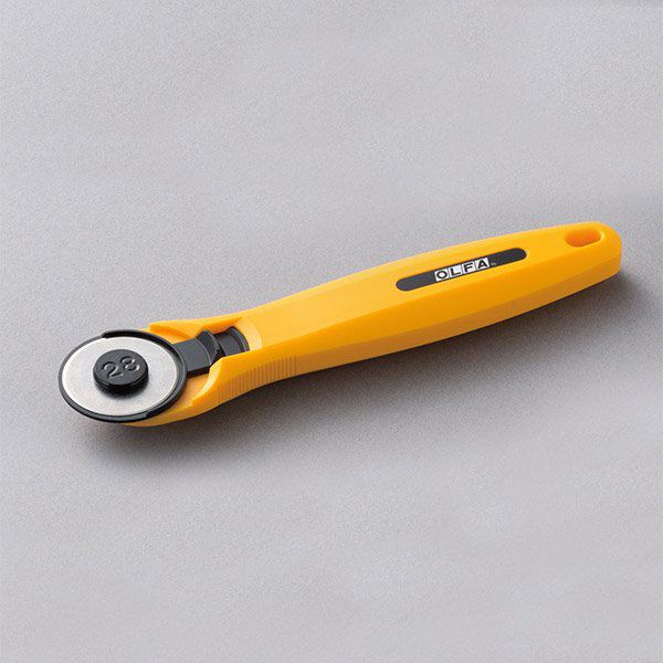 OLFA(オルファ)の小回りのきく直径28mm円形刃を装着したロータリーカッター。 布や紙をはじめ、薄手のゴムシート、フィルムなどの切りにくい素材も自在にカットできます。ワンタッチで替刃の交換が可能です。