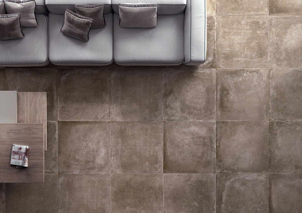 スタイリッシュなコンクリート調大判タイル。