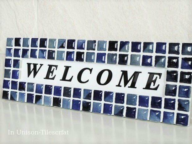 ぷっくりツルッとした磁器質モザイクタイルを貼ったオリジナル感溢れるウェルカムボードです。