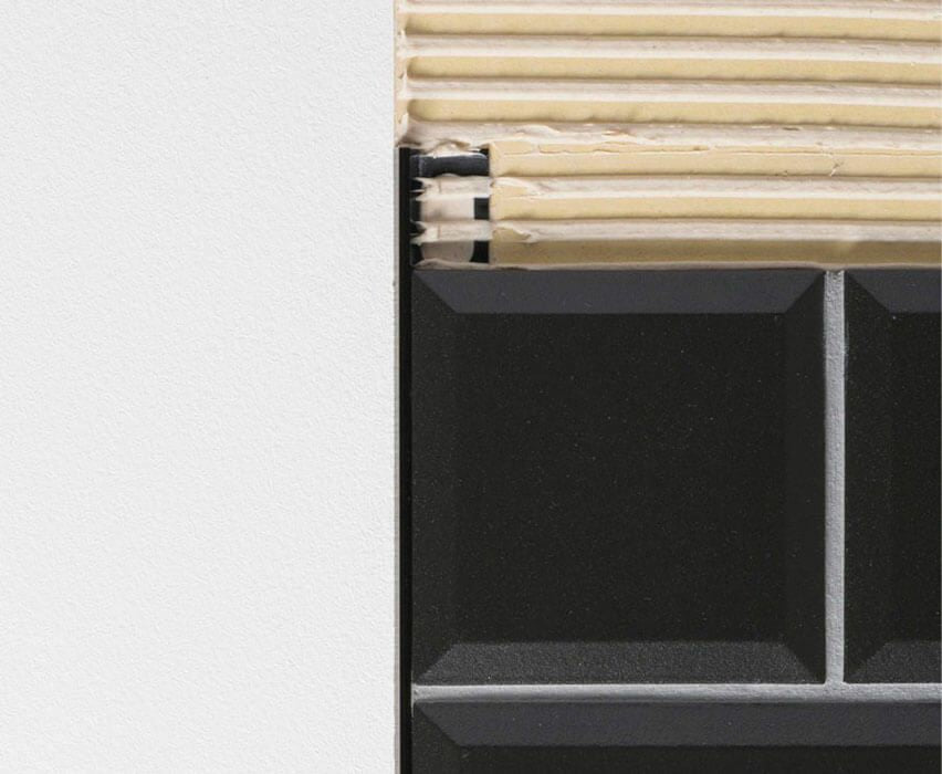 - 見切り材とタイルは突き付けで施工します。見切り材とタイル間の隙間に目地材が入り込まないよう、注意して施工してください。