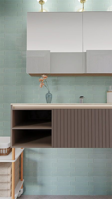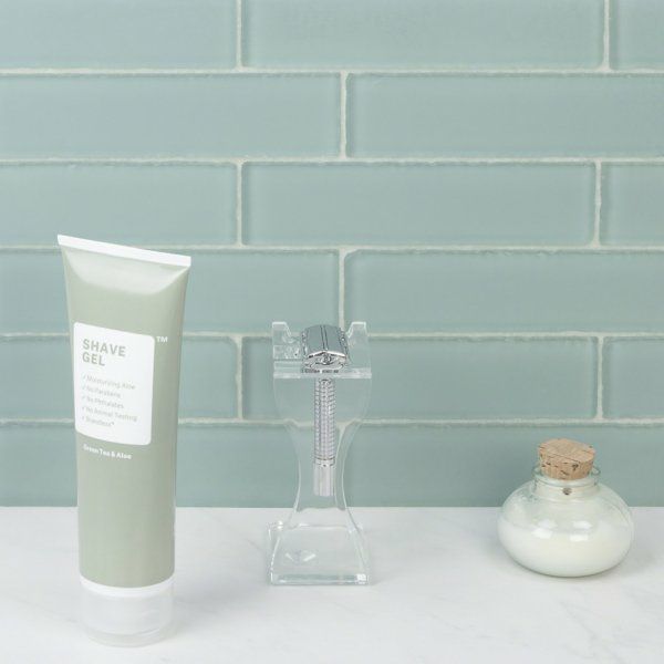 珍しいすりガラスのサブウェイタイル。シーグラスを彷彿とさせる美しいタンブルエッジが特徴。