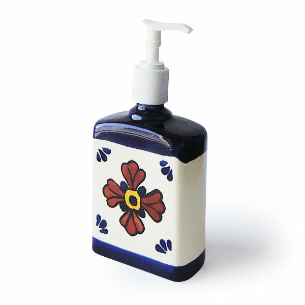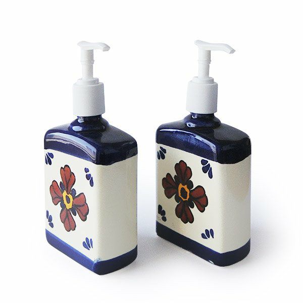 ラテンのエネルギーと素朴な可愛らしさ溢れる、メキシコ特産・タラベラ焼のソープディスペンサーです。