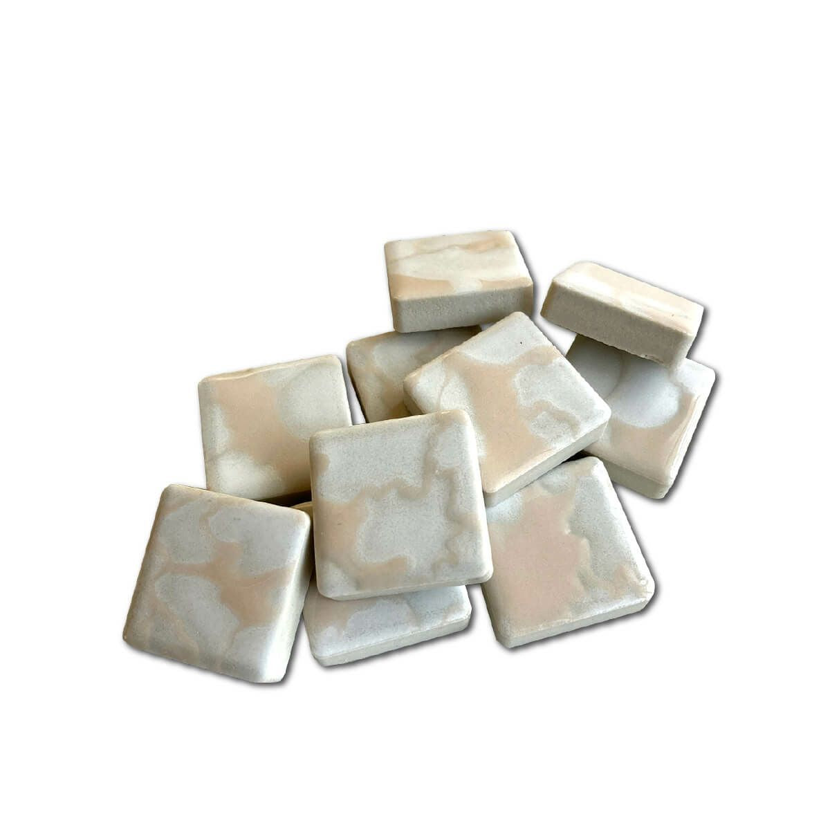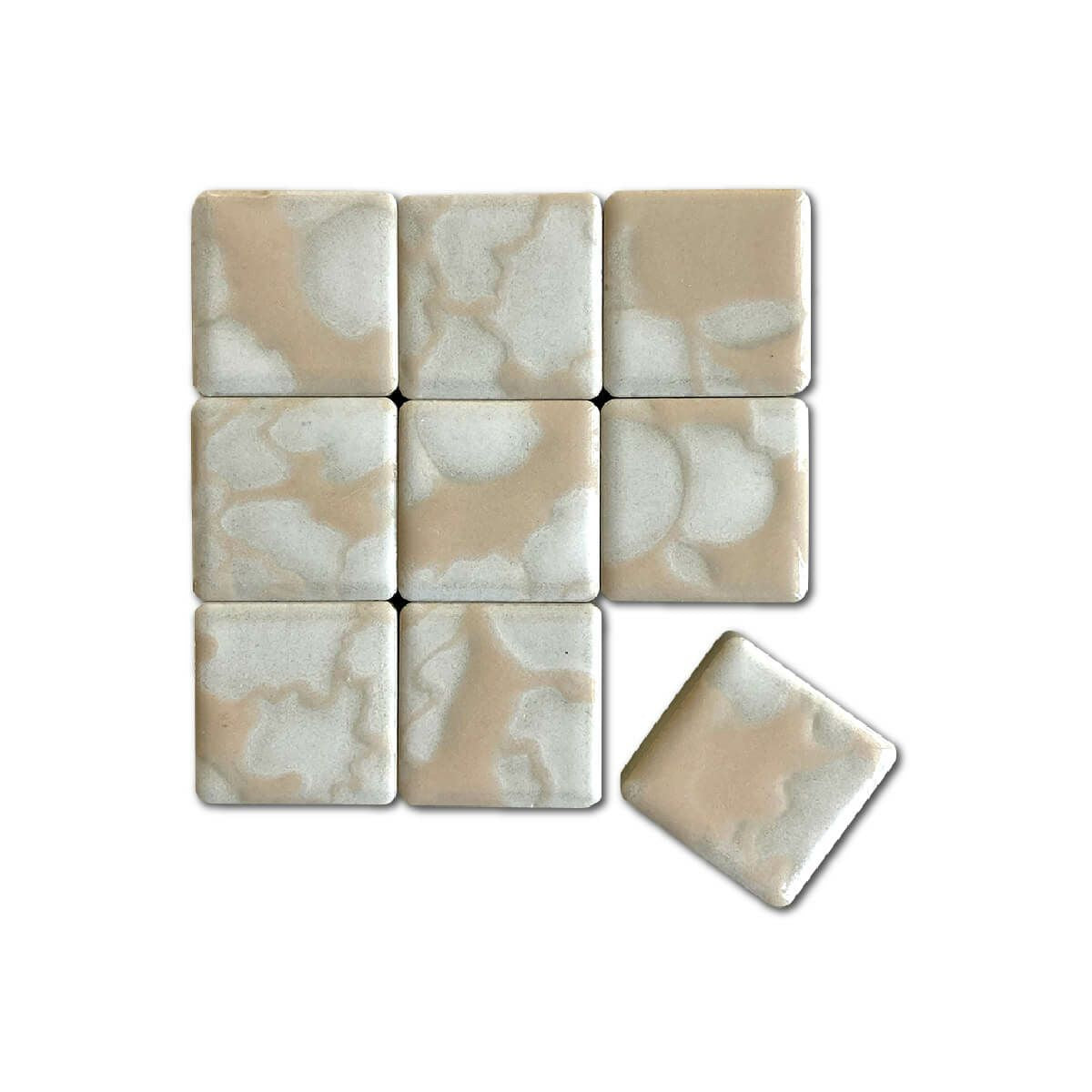 モチーフは、美しい日本の女性を表す花。このモザイクタイルは、豪華な芍薬の花びらが散っているかのように23mm角にあしらったものです。花びらピースの中にブライトとマットを出現させたこだわりの施釉技術による、個性的で美しいモザイクタイルです。
