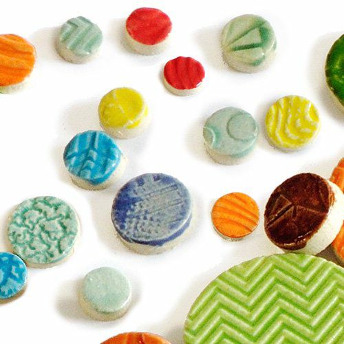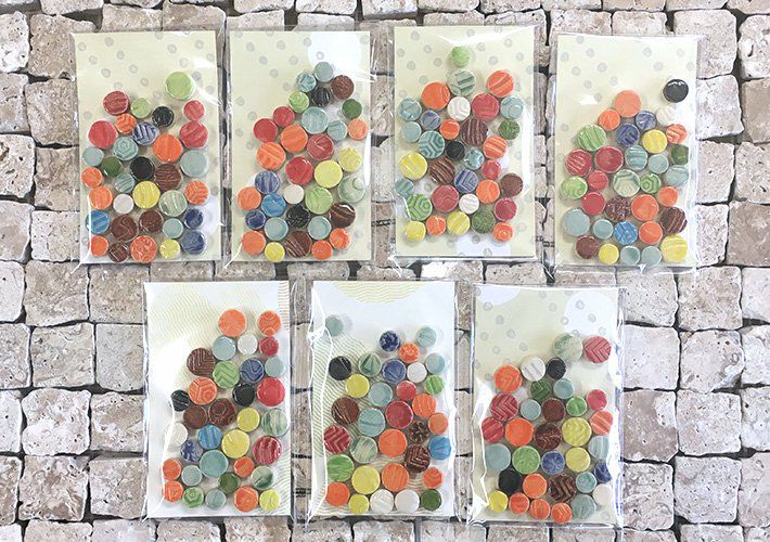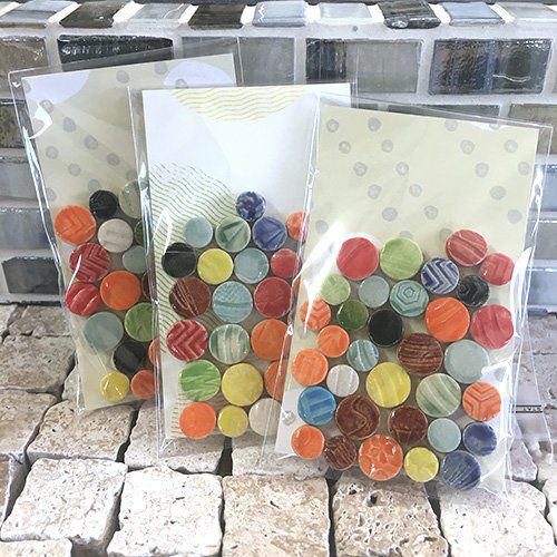 どれが届くかお楽しみ♪ひとつひとつ手作業でエンボス加工を施した、カラフルなモザイクタイルです。