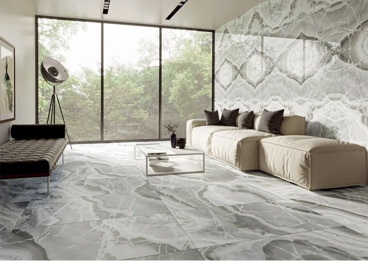 古代ペルシャや中国、南米で珍重されてきた「翡翠(ひすい)」。 その特徴的な縞模様と透明感を、タイルに再現しました。 宝石のような希少石材を贅沢に取り入れることを可能にした、セラミックタイルによる豊かさの提案です。