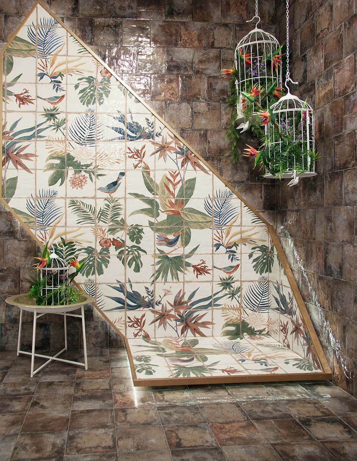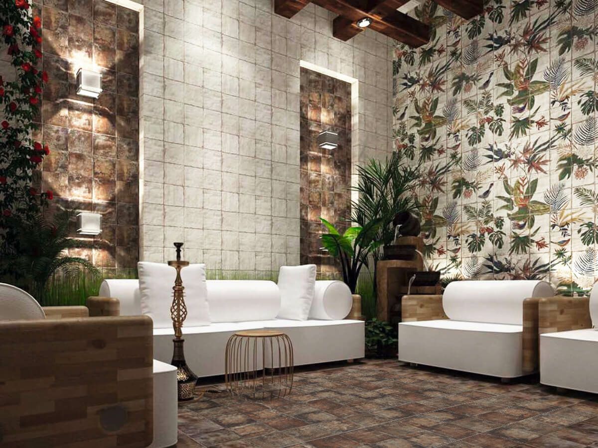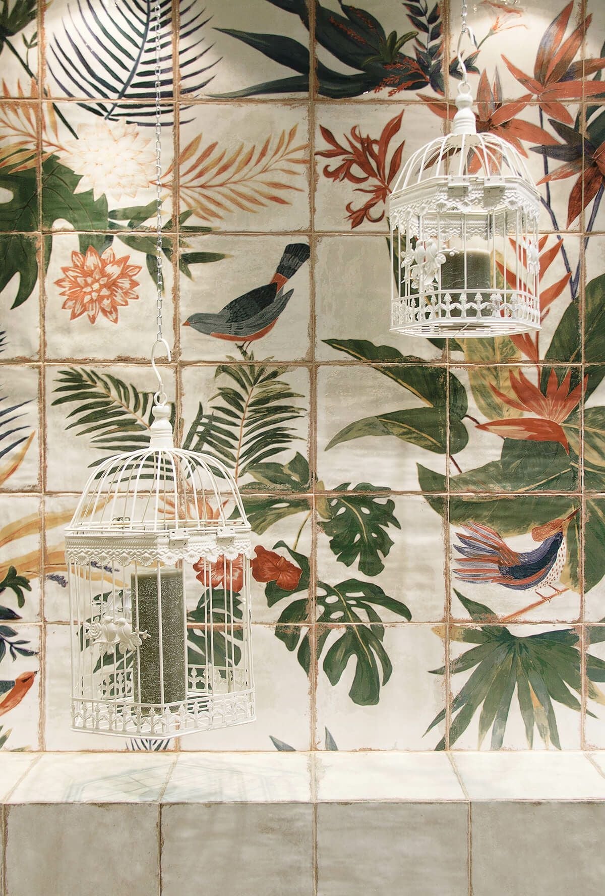 ビンテージな風合いと個性豊かなカラーとデザインのバリエーションをもつシリーズ。大胆で多彩な装飾は、MAINZUブランドの代名詞となっています。このバリエーションでは、1箱=36枚のタイルを使って1枚のアートを作り上げます。(総面積:1200×1200mm)