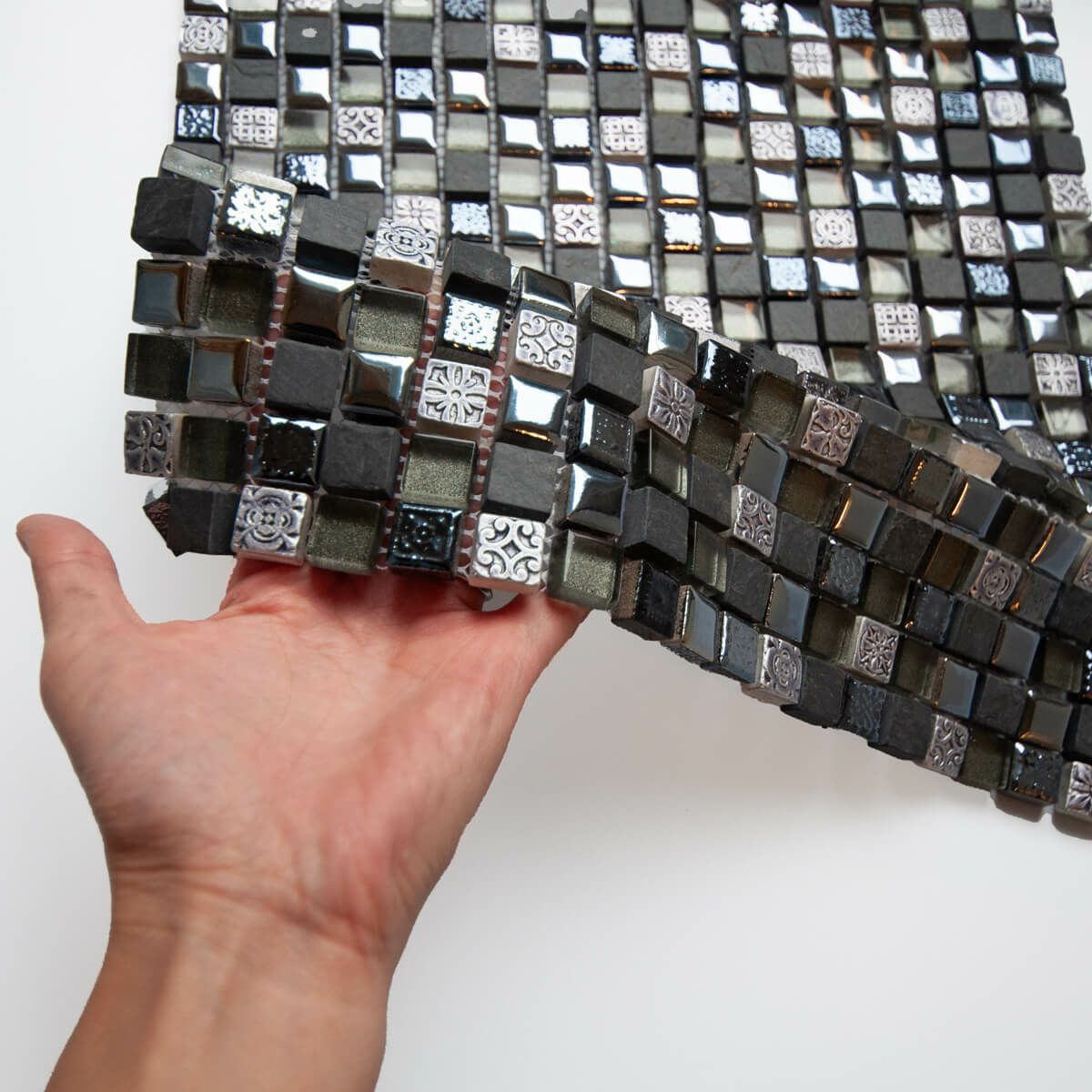 裏ネット張りのモザイクタイルはハサミでお好みのサイズにカットできるので、DIY初心者の方にもオススメです。