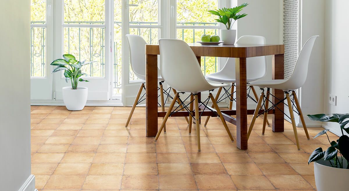 ラフなエッジとボタニカルデザインがアジアンリゾートのテイストを演出します。抵抗評価(DIN51130)R10で滑りにくいため、屋外フロアへの使用も安心です。
