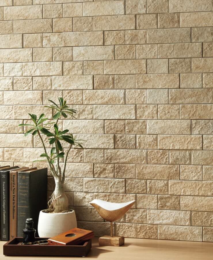 ライムストーンの繊細な柄と陰影感のあるレリーフの組み合わせにより、ナチュラルな空間を演出します。