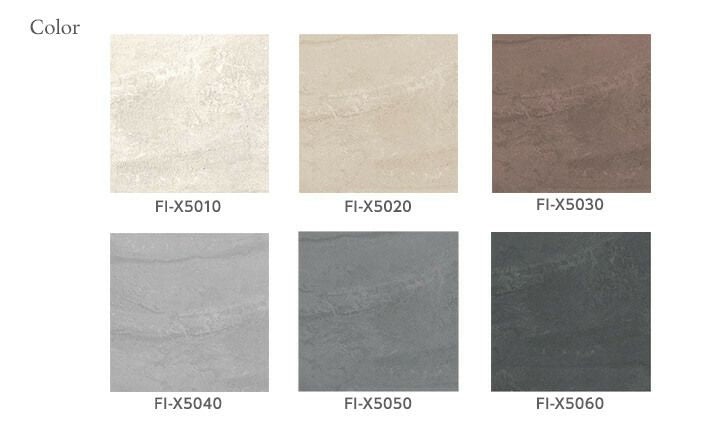 セメントのテクスチュアが描く独特な風合い。大判のスケール感も相まって、クールなイメージを創ります。