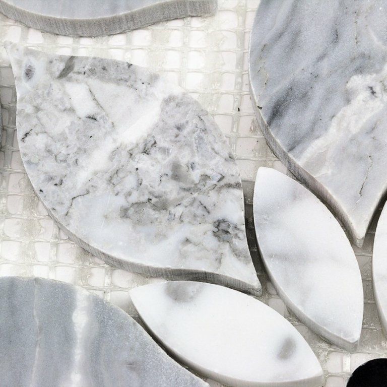 デザイン豊かな大理石モザイクを集めた特別なコレクション。三角形のモザイクタイルでキッチンやバスルーム、洗面・トイレをラグジュアリーな空間に。