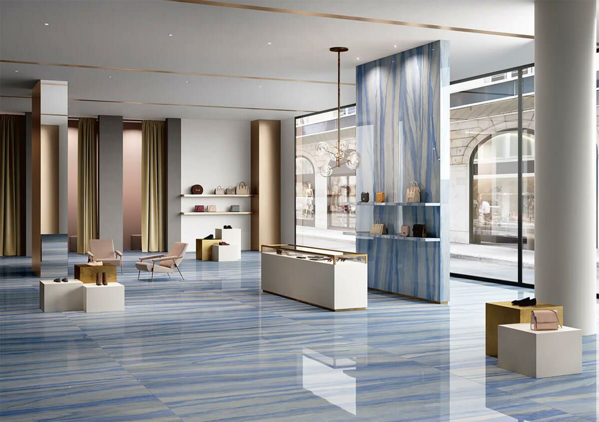 大理石調タイルの最高峰シリーズ、マルミマキシマム。 複雑な石模様や透明感を表現するため、原料となるパウダー状の粘土を複数色配合。 さらに釉薬を素地の中まで浸透させた状態で高温焼成し、本物のような美しさと、本物以上の物性を兼ね備えた製品を実現しました。