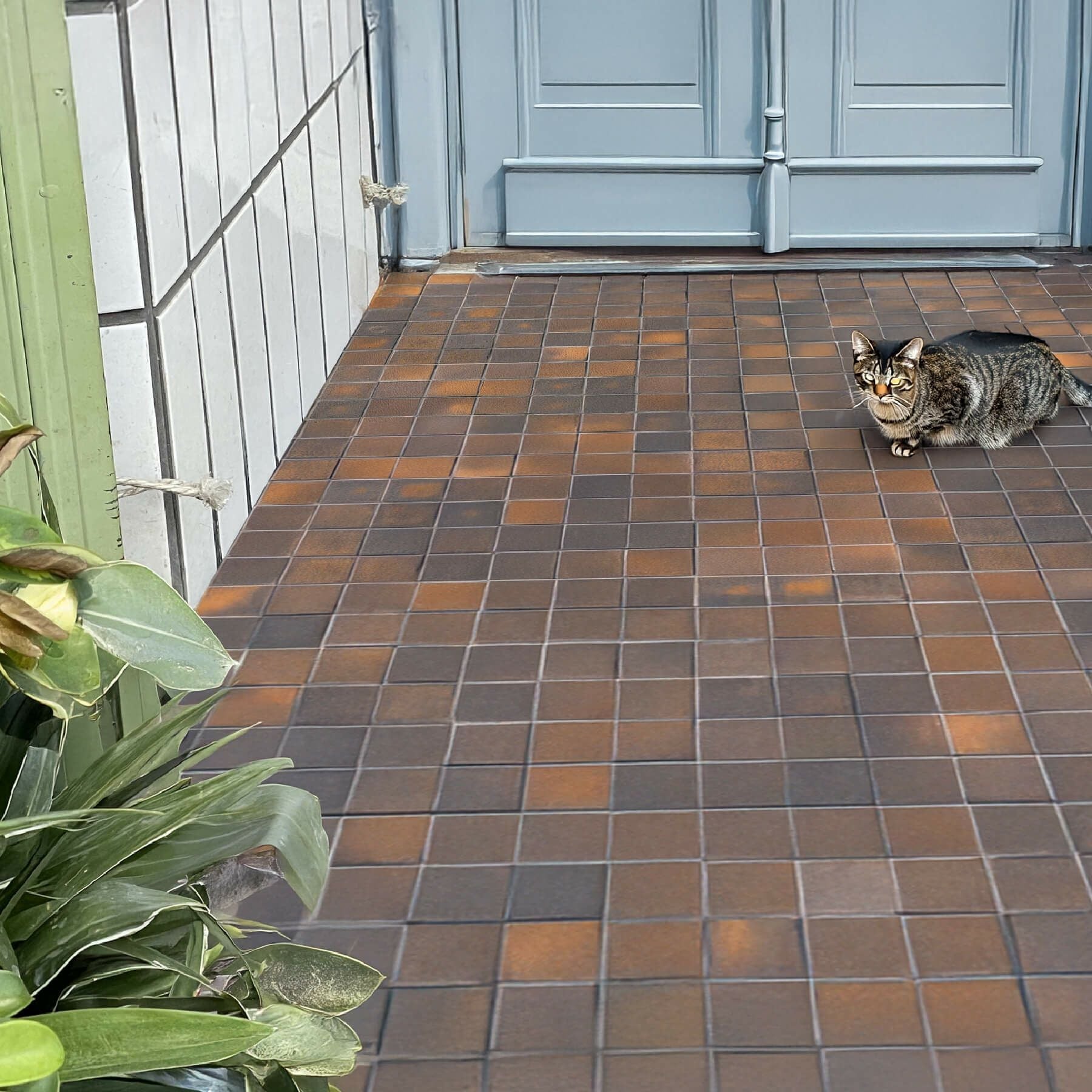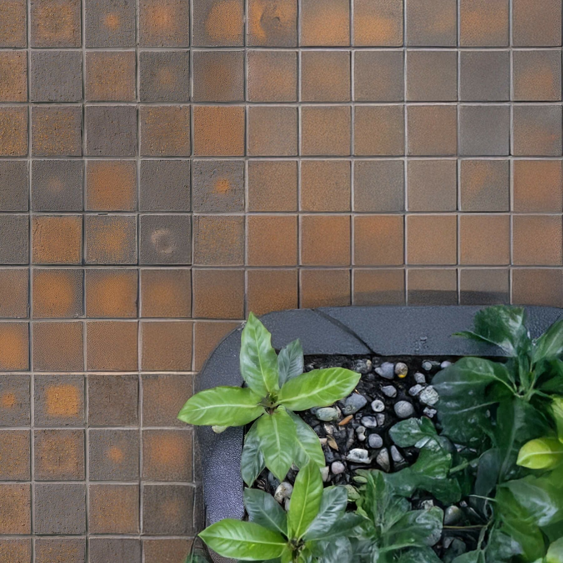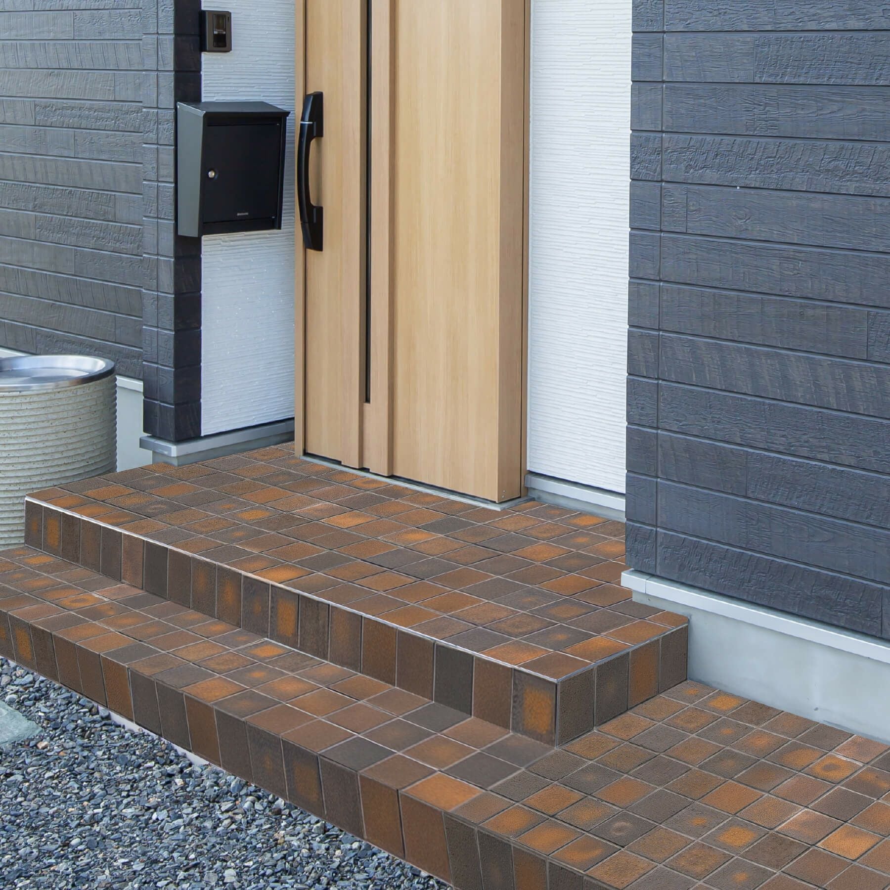 溶融スラグなど100%リサイクル原料を使用して生産する資源循環型タイル。霧がかかったようなスラグ特有の風合いと、還元焼成によって生み出される深い色合いで、大地のパワーを感じる力強い表情に仕上げています。