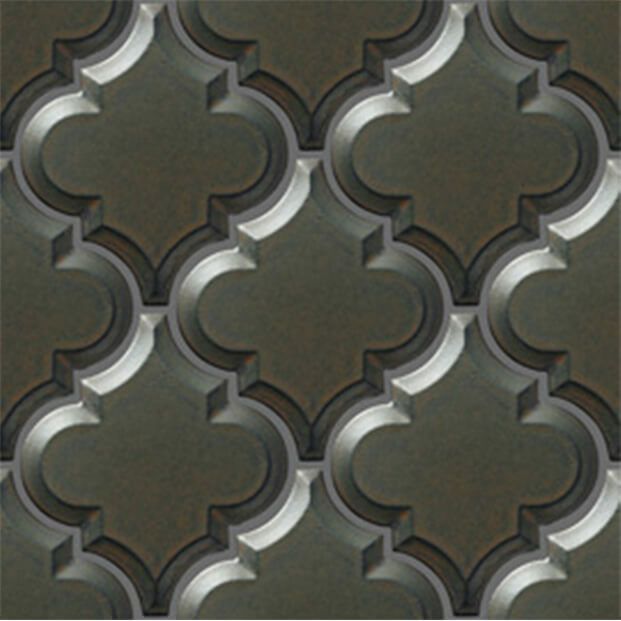 アラベスク模様をモチーフにした象徴的なフォルム。モザイクタイルよりも少し大ぶりな形状と落ち着いた色調は、現代建築に自然と溶け込み、優雅な大人の空間へと導きます。