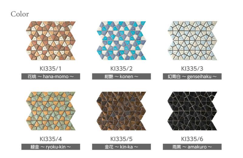日本の伝統模様から派生した形に艷やかな釉を施した亀甲形のタイル。ランダムな花紋様が気品ある空間を創作します。