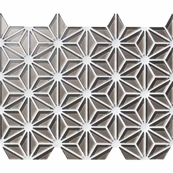 日本伝統柄の「麻の葉」をガラスで再現したモザイクタイルです。6mm厚ガラスが織りなす奥行きのある輝きが魅力です。