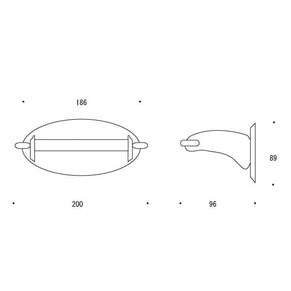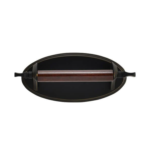 シンプルな真鍮プレートに木製の芯棒を使用したトイレットペーパーホルダー。