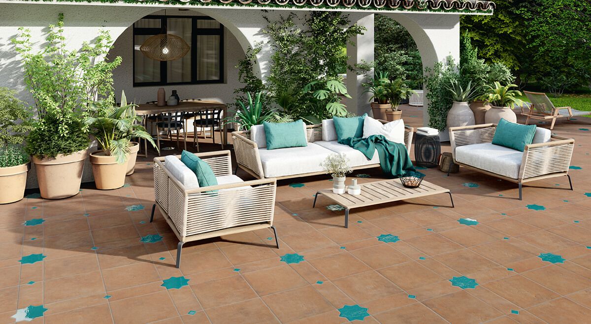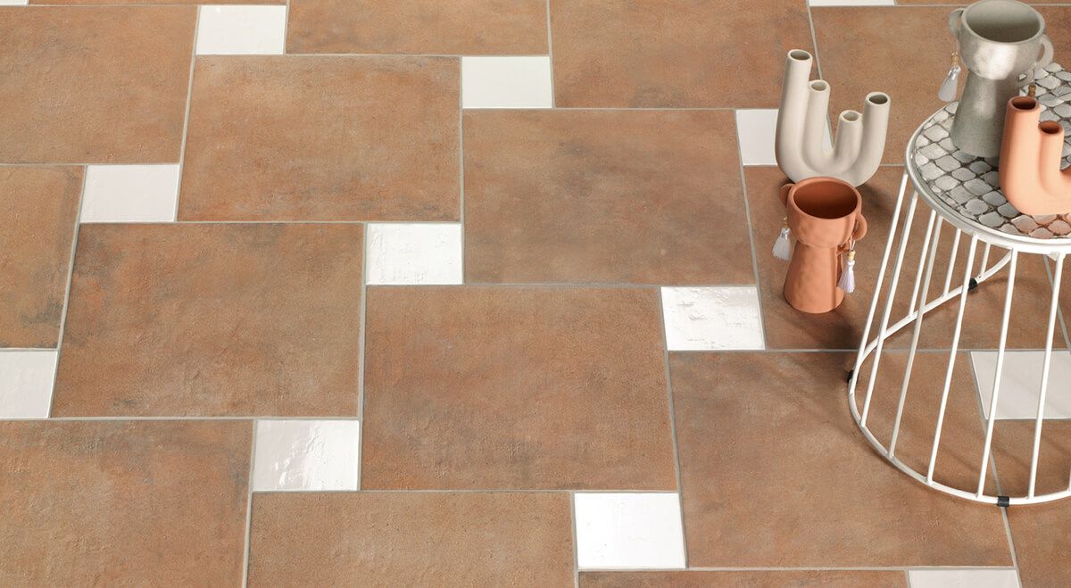 テラコッタは時代を超えて愛される普遍的なデザインカラーですが、ユニークなアクセントタイルを用いたコーディネートが、その新しい魅力を一層に引き立ててくれます。