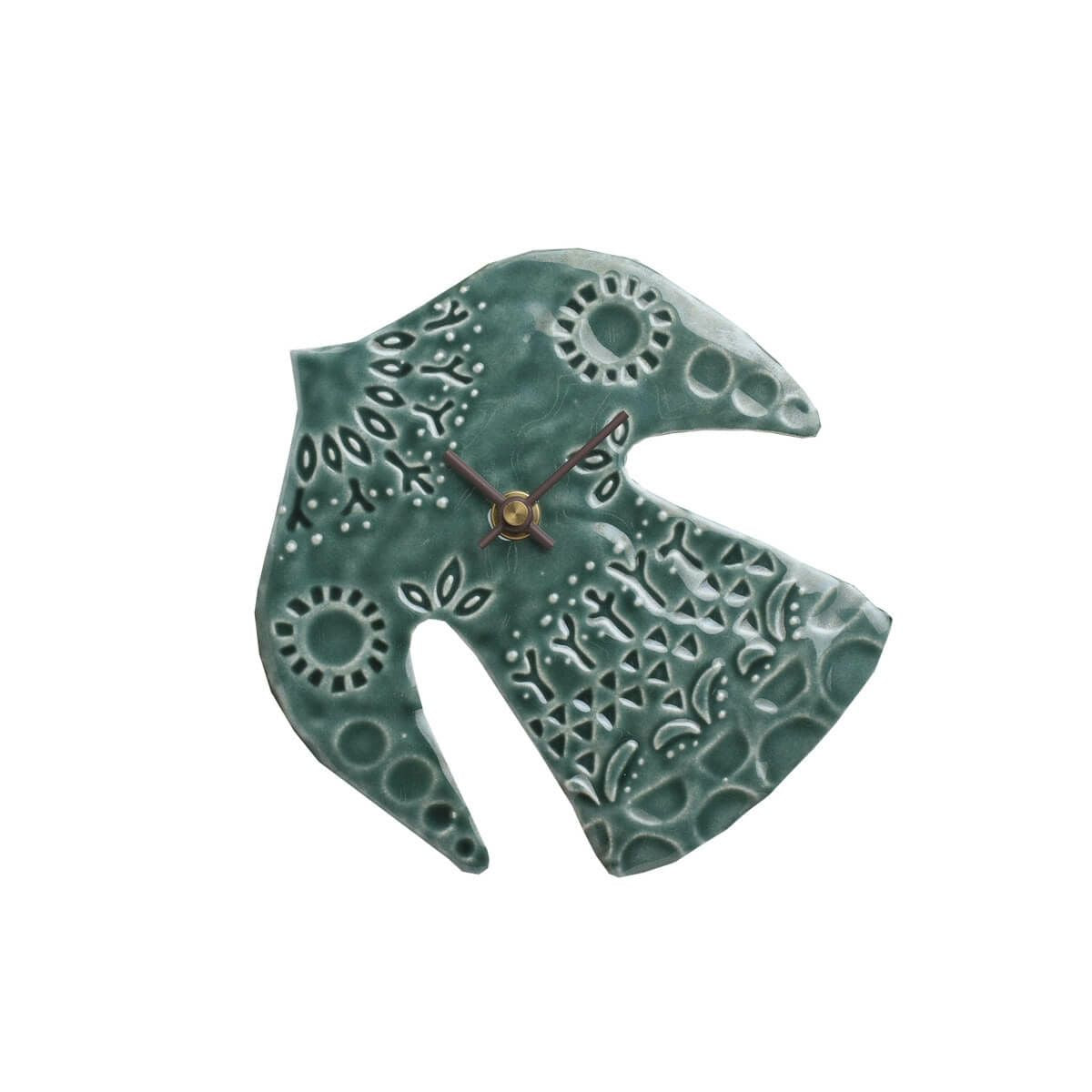 タイルメーカーと中村ジュンコ氏のコラボで生まれた陶磁器製の掛け時計。