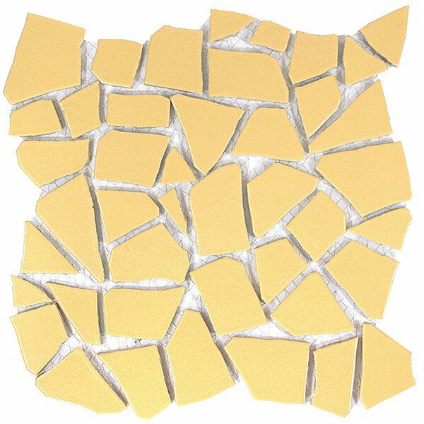 製造工程で割った特殊形状のタイルです。ふたつとして同じ形のないクラッシュタイルは曲面表現・オブジェ創作など造形感覚を刺激する「タイルアート素材」。鋭角部分の縁も丸く施工しているので安全です。DIYや工作などに!