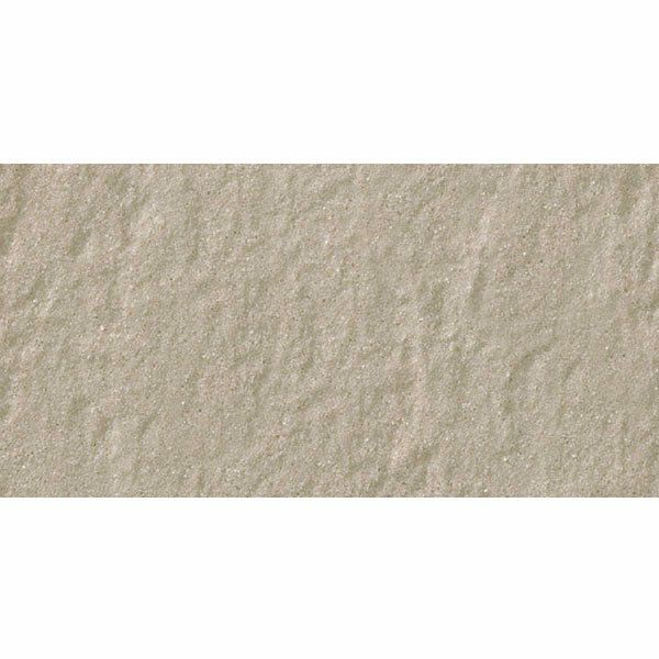 すべりにくさはそのままに汚れを落としやすくした床タイル。「マイクロガードフロア」仕様の床タイル・アレス。さまざまな外観デザインに合わせやすいやわらかいライムストーン調の意匠です。