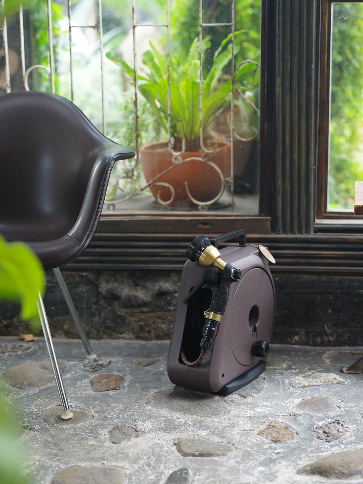 「出しっぱなしでも庭や建物外観と調和するデザインのものがない。」そんな声から産まれたホースリールです。