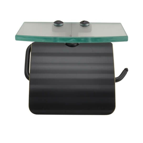トイレットペーパーホルダーにガラスシェルフが付いた、美しくも便利な一品です。