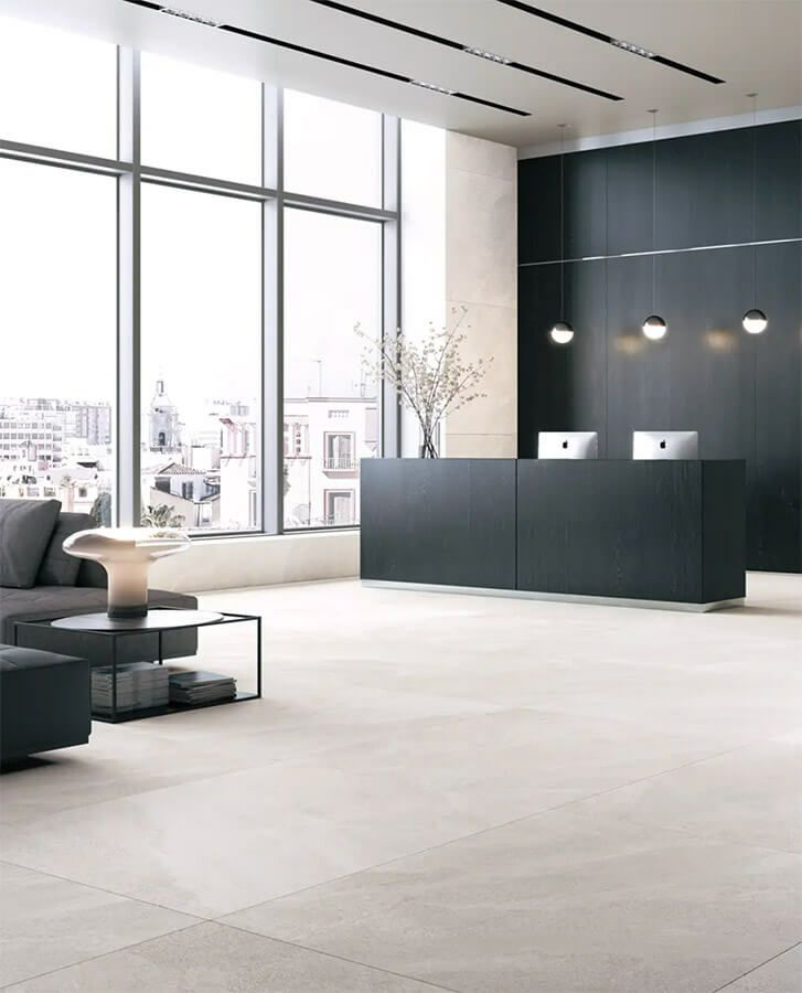北欧各地の天然石を組み合わせ、独自の模様・色合い・面状をプロデュースしました。 繊細な静脈パターン、砂粒を感じさせるテクスチュアなどが、独特のニュアンスを形成。天然素材の持つ多様性と豊かさを表現しています。