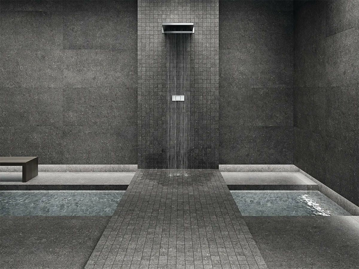 きめの細かいグレーの石灰岩からインスピレーションを得て創作されたシリーズです。繊細な斑点模様がグレー系からパール系まで豊かなトーンで配置されており、クールな印象の中にも色調の豊かさを添えています。