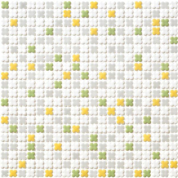 手づくり感のあるふっくらした面状と、小さな花の形がかわいいモザイクタイル。