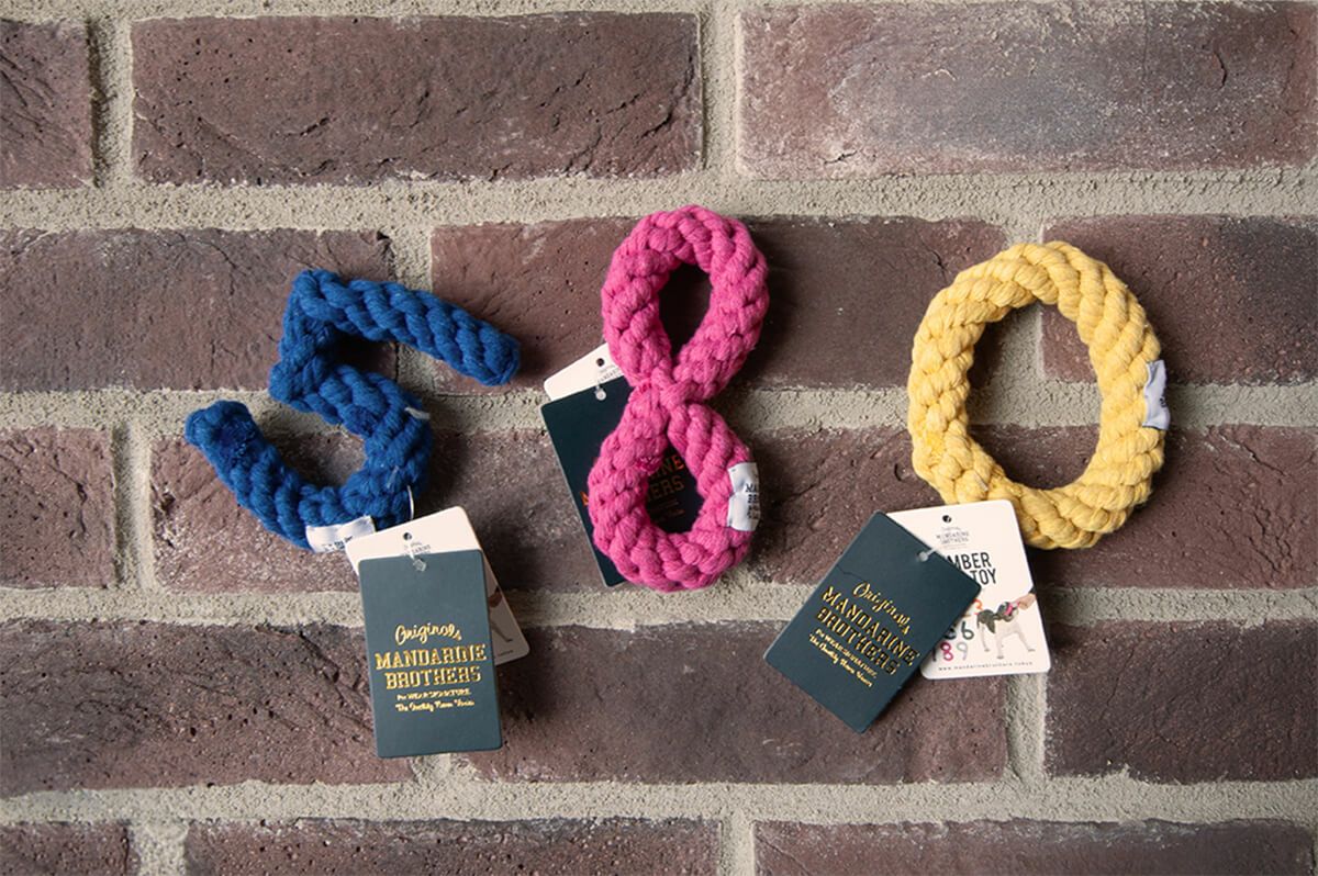 引張遊びが楽しいコットン製ロープおもちゃ。