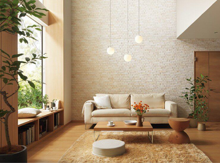 ライムストーンの繊細な柄と陰影感のあるレリーフの組み合わせにより、ナチュラルな空間を演出します。