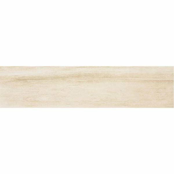 外床・内床が同色で揃うナチュラルな木目調タイル。粗目タイルは滑りに強く、駅や商業施設の床に広く採用されています。