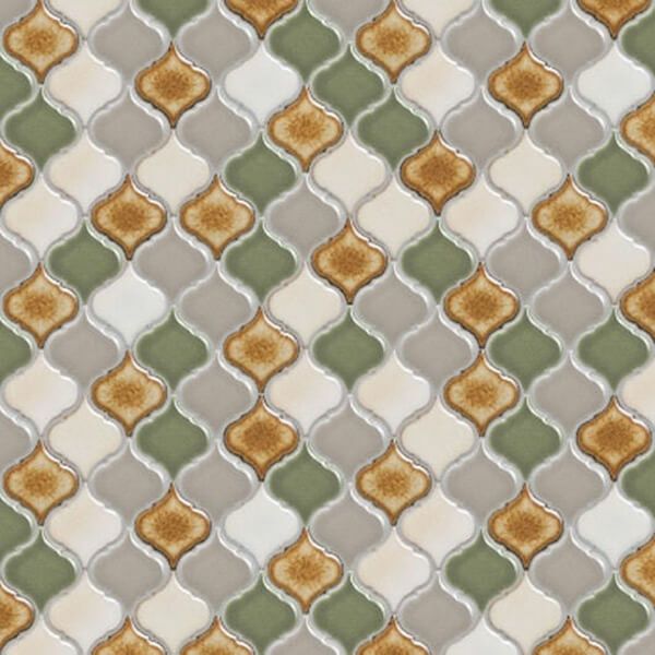 エスニックなイメージのランタン形のモザイクタイル「コラベル」。トラディショナルな釉薬づかいが、レトロなイメージを創ります。