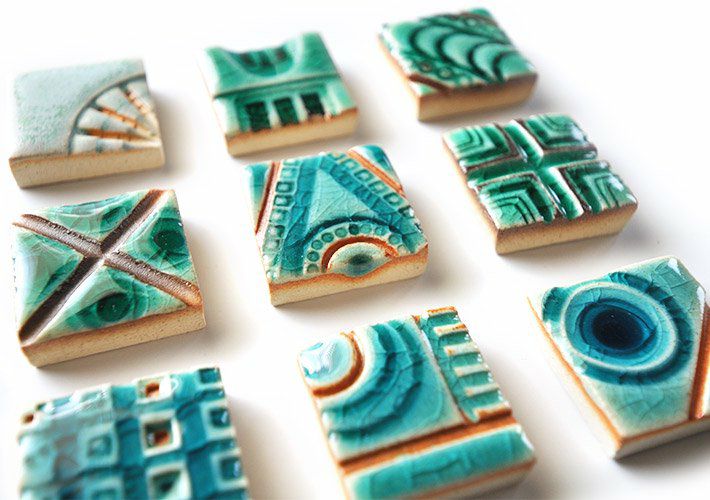 遺跡や街並みをモチーフとした作品を多く手がける彼女のタイルは、宝箱に大切にしまっておきたくなるような、どこかエキゾチックな佇まい。タイルとしてはもちろん、箸置きやアクセサリーパーツとしての使用もおすすめです。