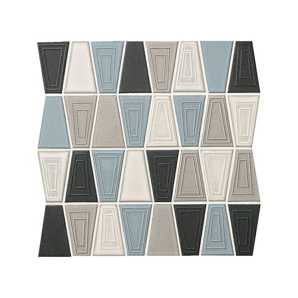 「リトム」。アールデコの幾何学デザインに触発された台形のモザイクタイル。淡く浮き出るラインの意匠が特徴的です。