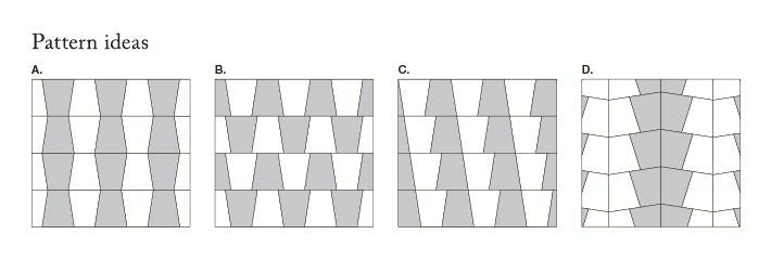 スカート状の台形は連続により変化が生まれてパターンになります。インド更紗(チンツ)をモチーフにした8種のランダム柄がエキゾチックな世界を広げます。