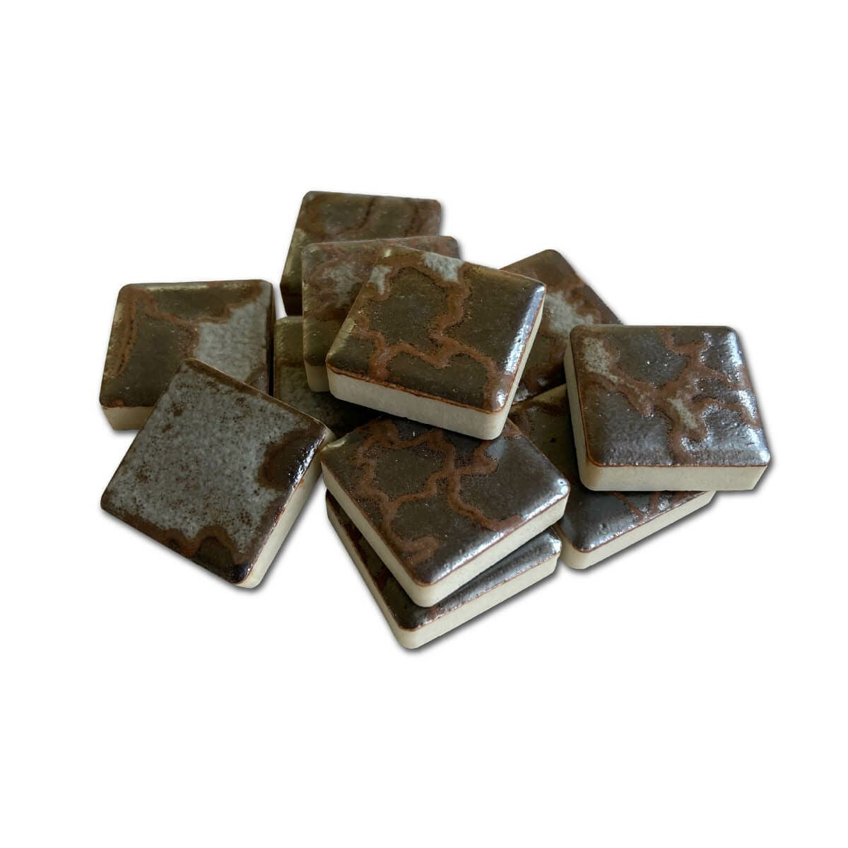 モチーフは、美しい日本の女性を表す花。このモザイクタイルは、豪華な芍薬の花びらが散っているかのように23mm角にあしらったものです。花びらピースの中にブライトとマットを出現させたこだわりの施釉技術による、個性的で美しいモザイクタイルです。