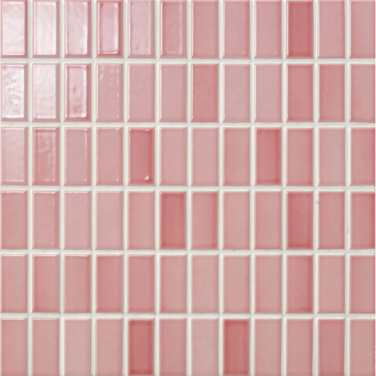 厳選された原料を使用した純白の生地に透明感のある釉薬を施し、躍動的で鮮やかな色調に仕上げました。甘いお菓子をイメージさせるようなキュートなモザイクタイルです。