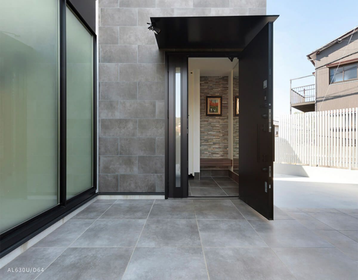 ● (グリップ)は外床用のノンスリップ加工をしたもの、(マット)は壁・内床用の製品です。● 水濡れする部分、玄関ポーチ・土間にはグリップタイプを使用してください。● 推奨工法(外床:改良圧着張り工法/圧着張り工法、内床:接着剤張り工法、外壁:スタップ工法(弾性接着剤張り工法)|5mmクシ目ビブラート、ビードL工法、ビードピン工法)