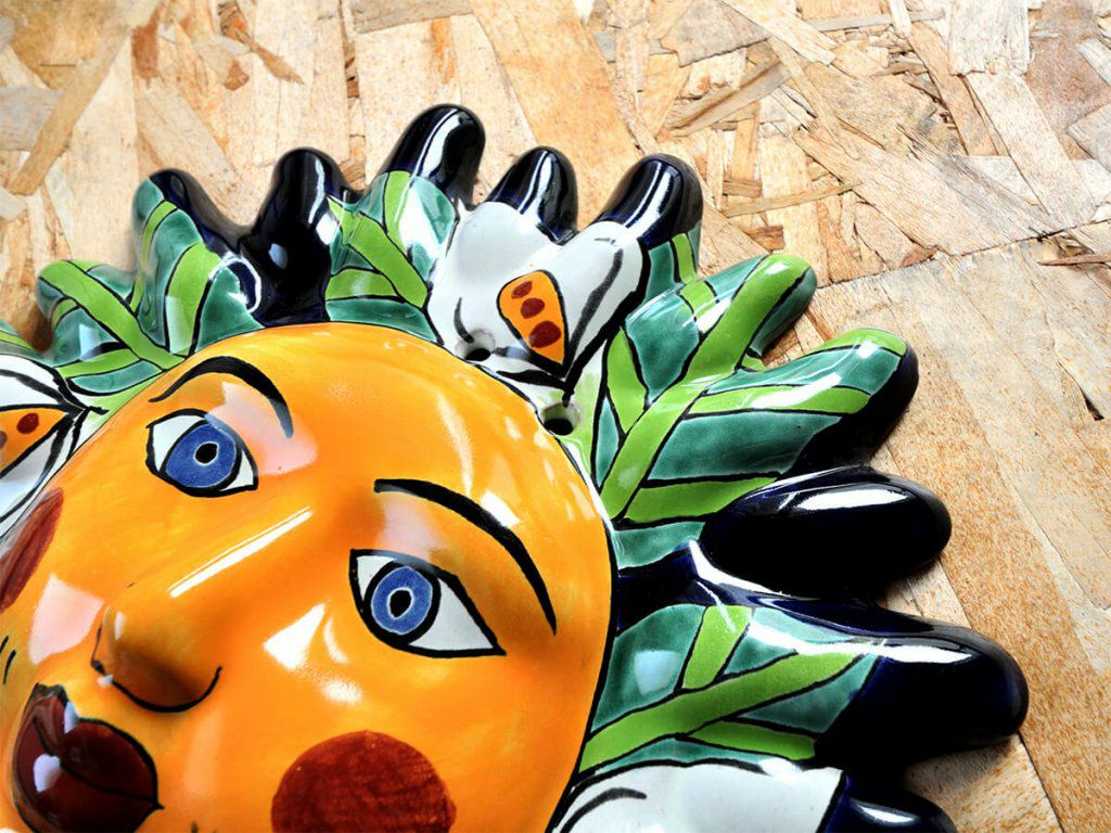 手書きで絵付けされた、太陽をモチーフにした立体的な顔が存在感抜群♪