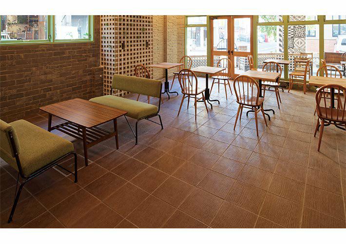 複雑に混合した色土素地により深みのある表現を追求した木目調タイル。