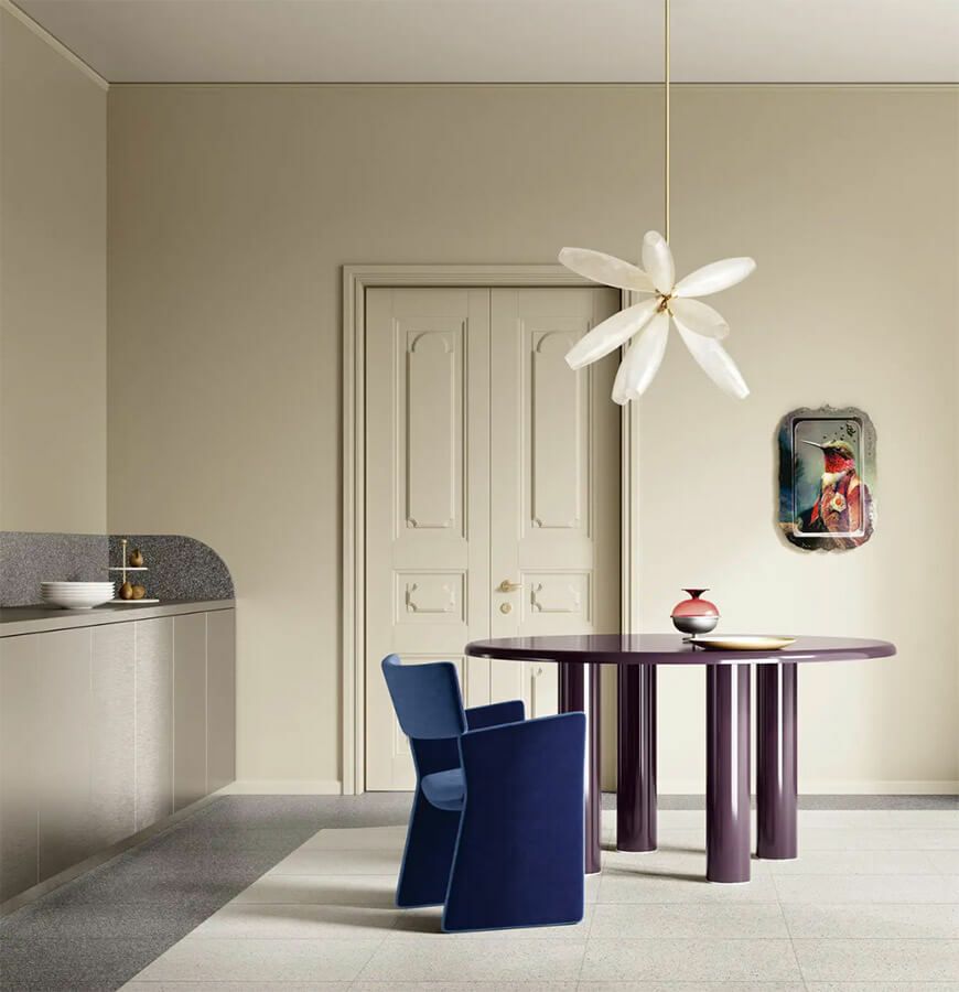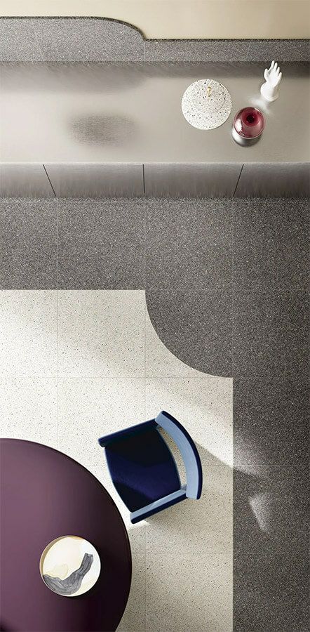 素地の中まで模様が入り込む、トレンドのフルボディ製法でよりリアルなテラゾータイルを再現しました。ブライト・マットの2面状を張り合わせて、洗練されたスタイリッシュな空間を楽しめます。