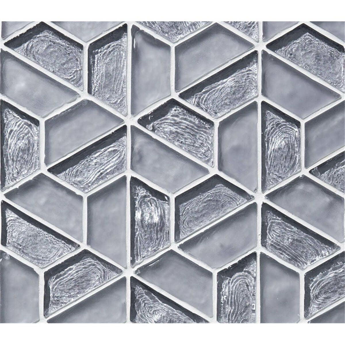 トラペジウム(台形)を幾何学的パターンにしたデザインガラスモザイク。カピス貝のような艶がシンプルな美しさを引き立たせます。
