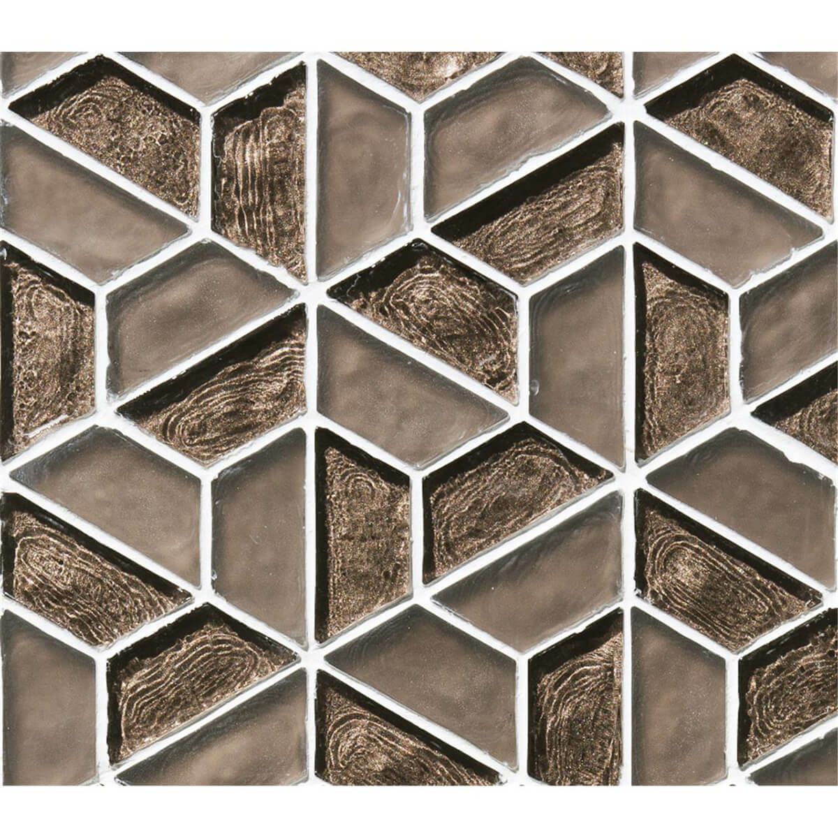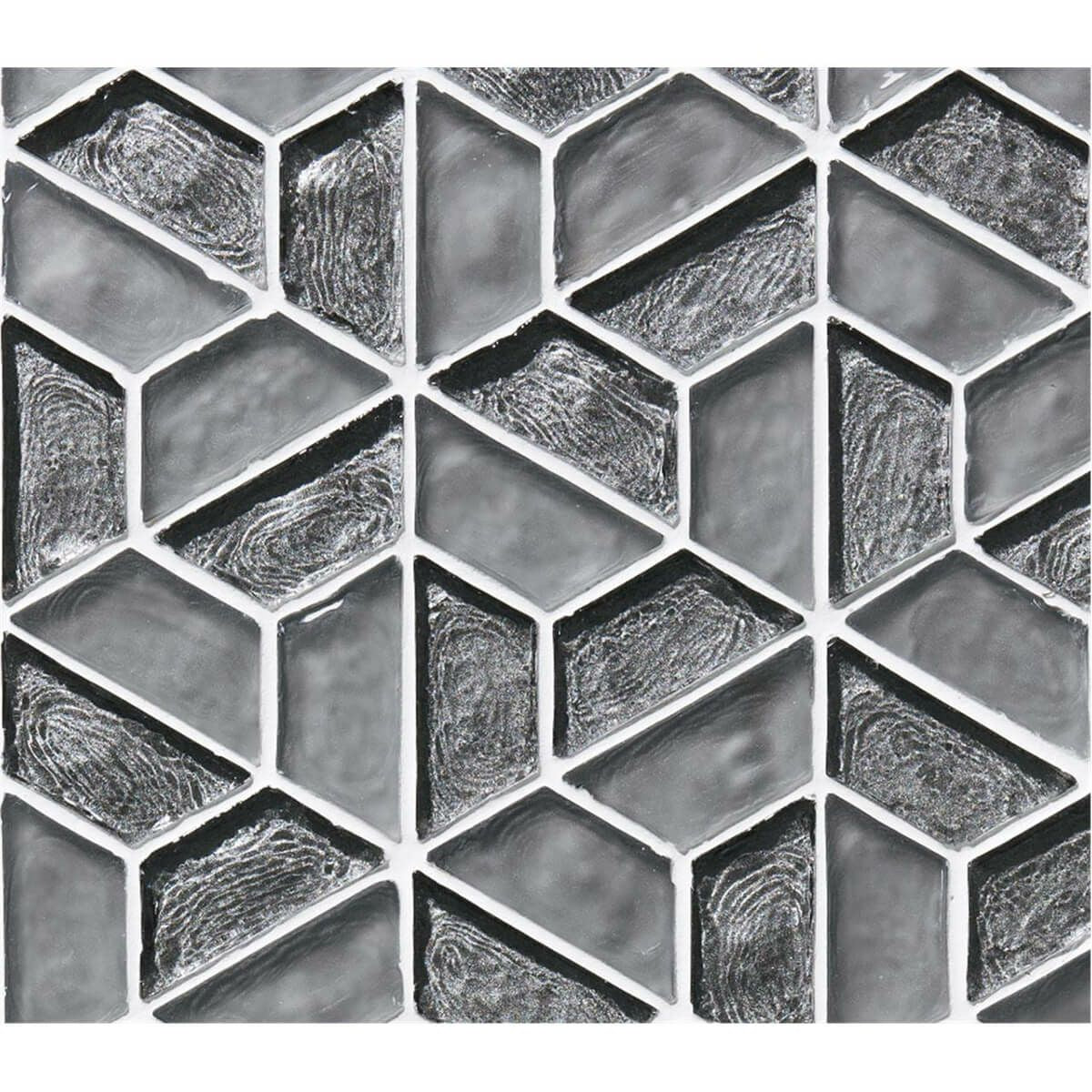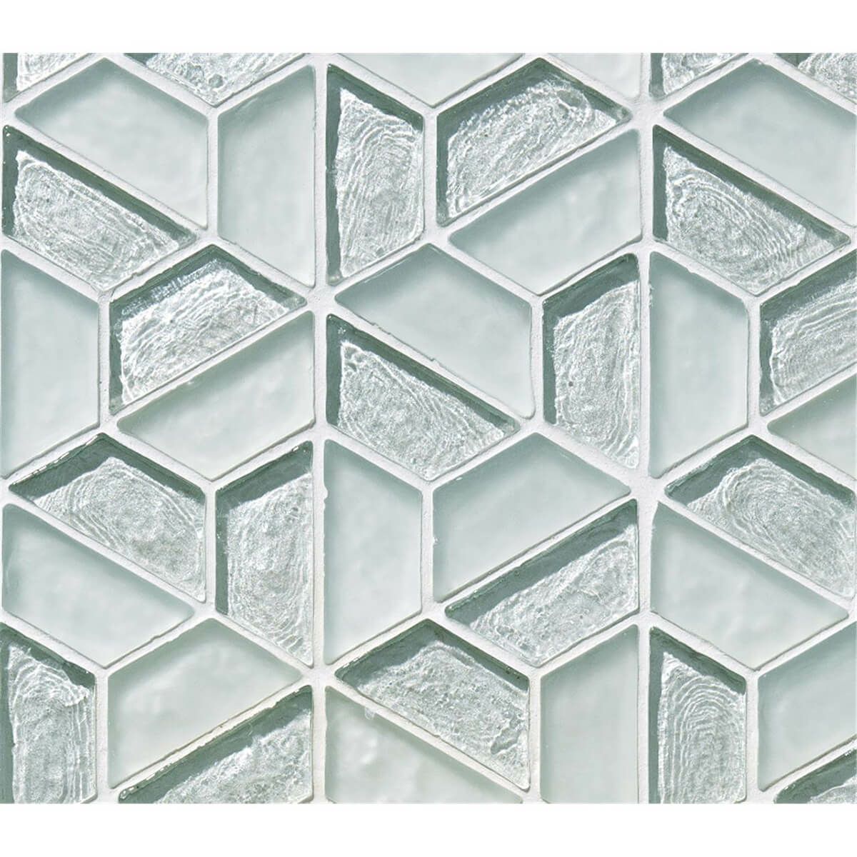 トラペジウム(台形)を幾何学的パターンにしたデザインガラスモザイク。カピス貝のような艶がシンプルな美しさを引き立たせます。